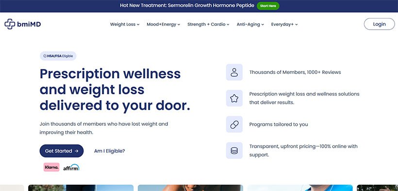 bmiMD specializes more specifically in metabolic health and weight management. Their peptide therapy options (Sermorelin, NAD+) go beyond what Hims typically offers. Pricing is competitive on both platforms.