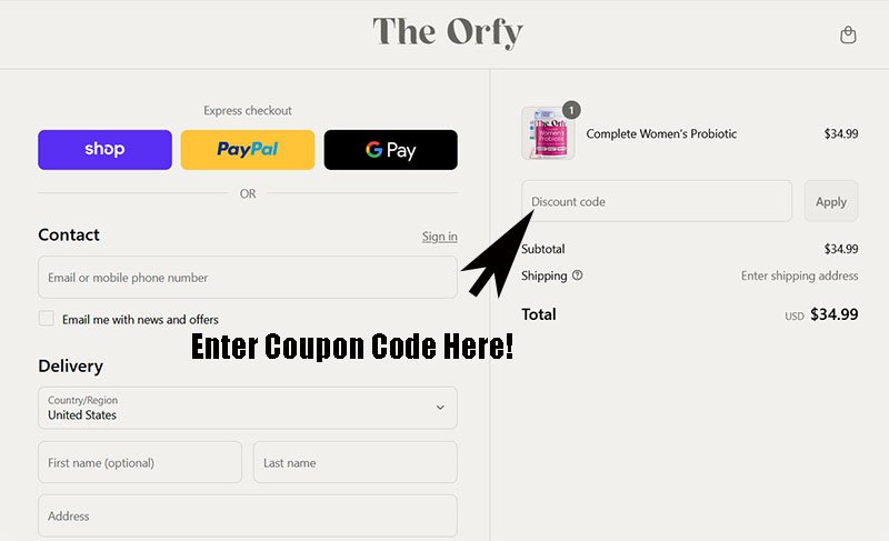 Snagging that 20% off is easy-peasy. Head to The Orfy official site, add Complete Women’s Probiotic capsules to your cart, and select the subscribe option. Enter our The Orfy coupon code at checkout and the discount will apply instantly. I flubbed the code once—oops—so make sure you type it exactly. No stress, just savings!